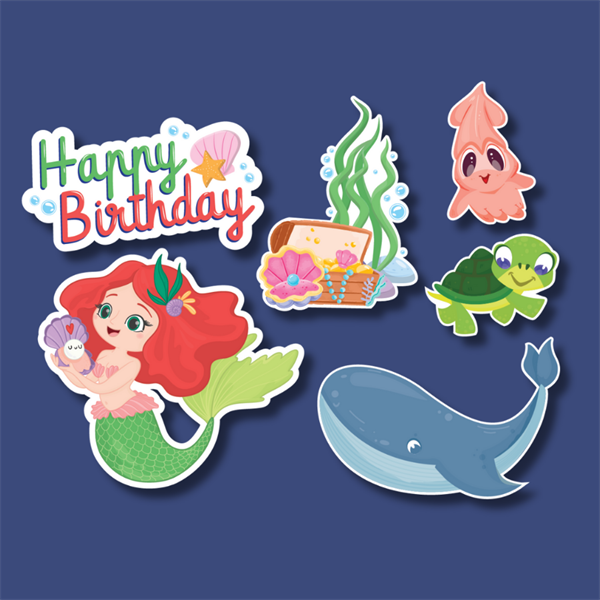 Set que giấy HPBD nàng TIÊN CÁ + RÙA, MỰC mẫu 1 (combo2)