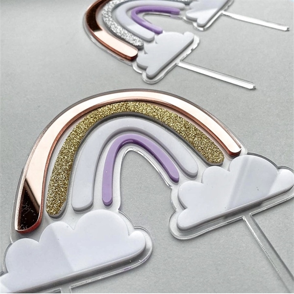 Topper mica 2 lớp CẦU VỒNG KIM TUYẾN VÀNG