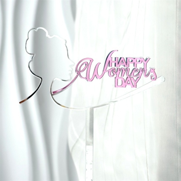 Topper mica 2024 Happy Women's day CÔ GÁI 2 lớp màu HỒNG M15
