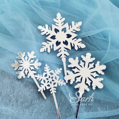 Topper mica 4 bông tuyết bạc