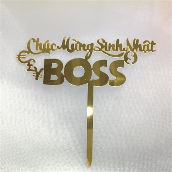 Topper mica chức mừng sinh nhật BOSS vàng