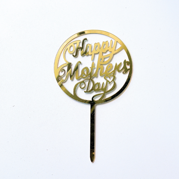 Topper mica Happy Mother's Day 1 vòng tròn lớn màu VÀNG