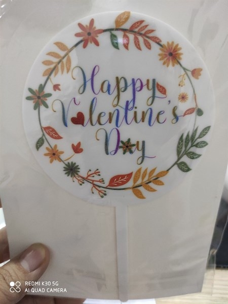 Topper mica HP Valentine's day tròn trắng +hoa