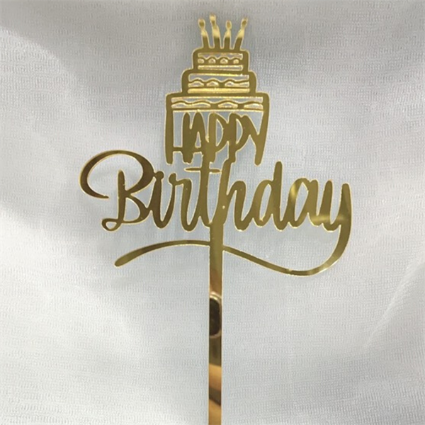 Topper mica HPBD bánh sinh nhật VÀNG