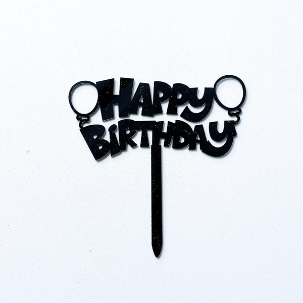 Topper mica HPBD bóng bay màu ĐEN chữ in nét đậm