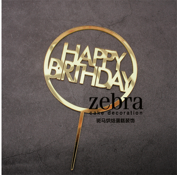Topper mica HPBD chữ in 1 vòng tròn vàng