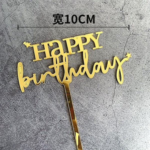 Topper mica HPBD chữ in - chữ thường 2 sao vàng