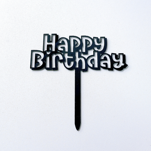 Topper mica HPBD chữ in nét RỖNG màu ĐEN