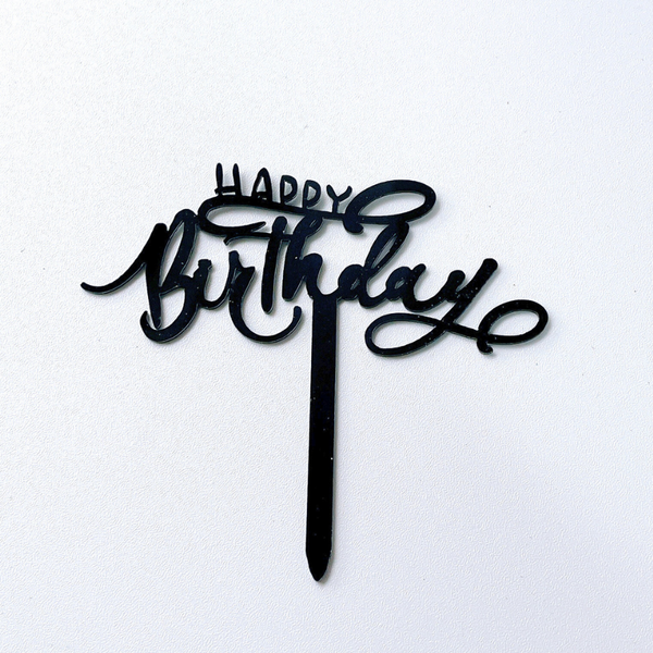 Topper mica HPBD màu ĐEN chữ uốn lượn gạch chân