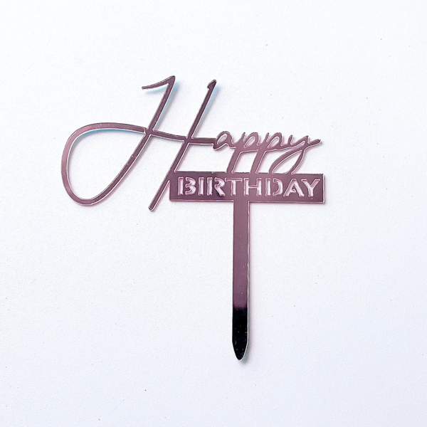 Topper mica HPBD màu HỒNG chữ Happy nghiêng ( chữ H to mới )