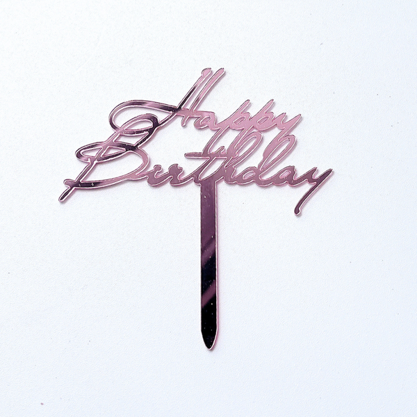 Topper mica HPBD màu HỒNG chữ HB nghiêng hoa nét nhỏ