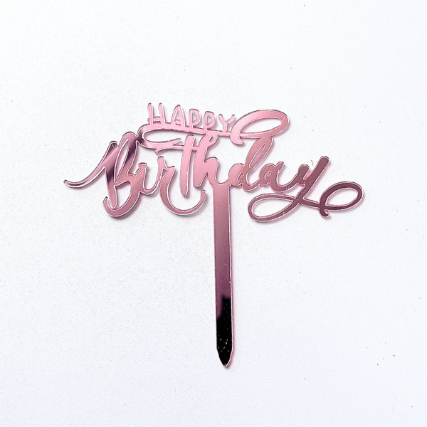 Topper mica HPBD màu HỒNG chữ uốn lượn gạch chân