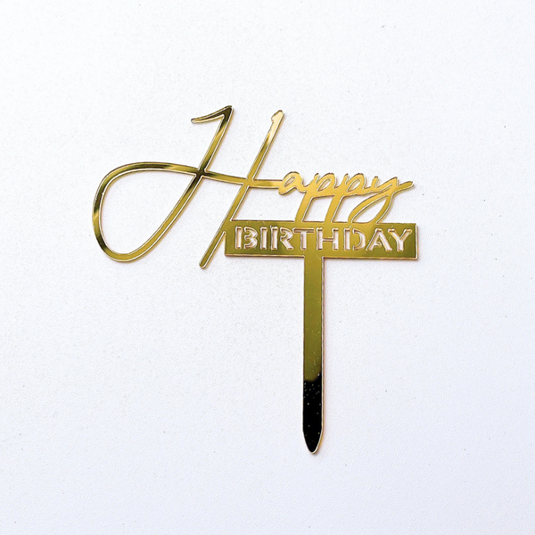 Topper mica HPBD màu VÀNG chữ Happy nghiêng ( chữ H to mới )
