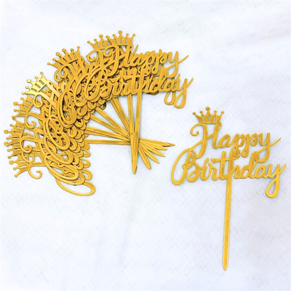 Topper mica Set 10 HPBD chữ vàng vương miện