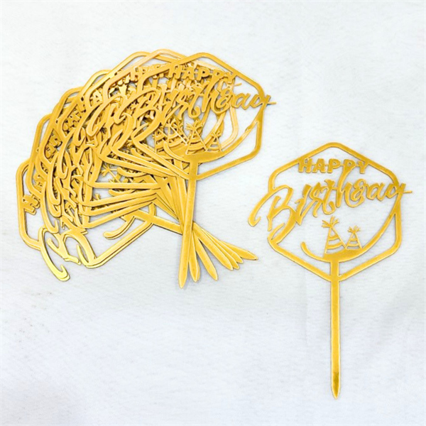 Topper mica Set 10 HPBD đa giác 2 mũ sinh nhật VÀNG