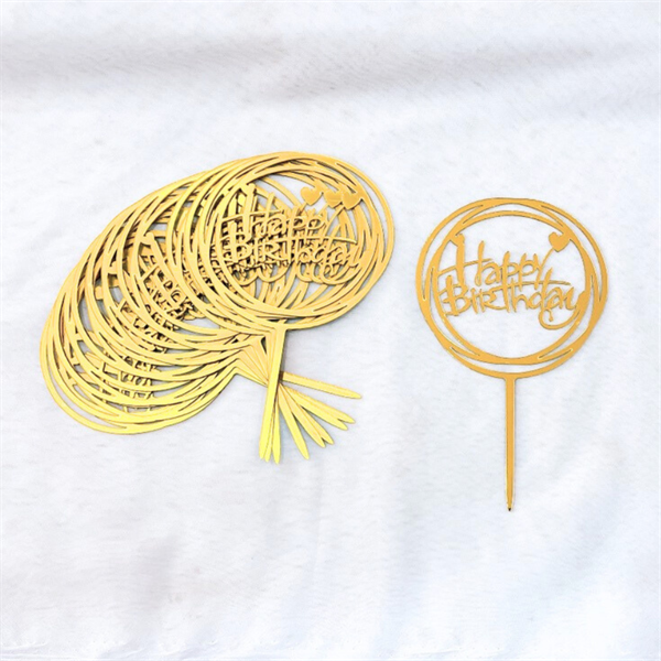 Topper mica Set 10 que HPBD 2 vòng tròn trái tim VÀNG