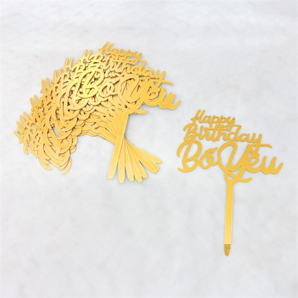 Topper mica Set 10 que HPBD BỐ YÊU VÀNG