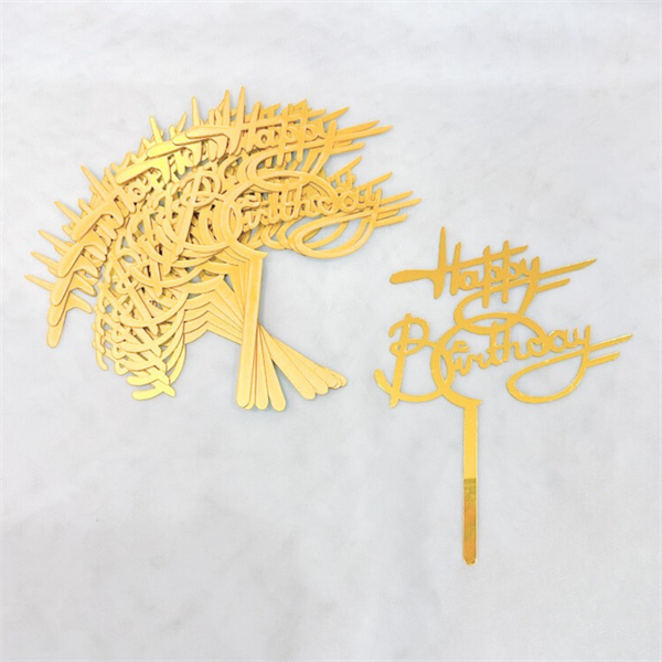 Topper mica Set 10 que HPBD chữ D uốn VÀNG