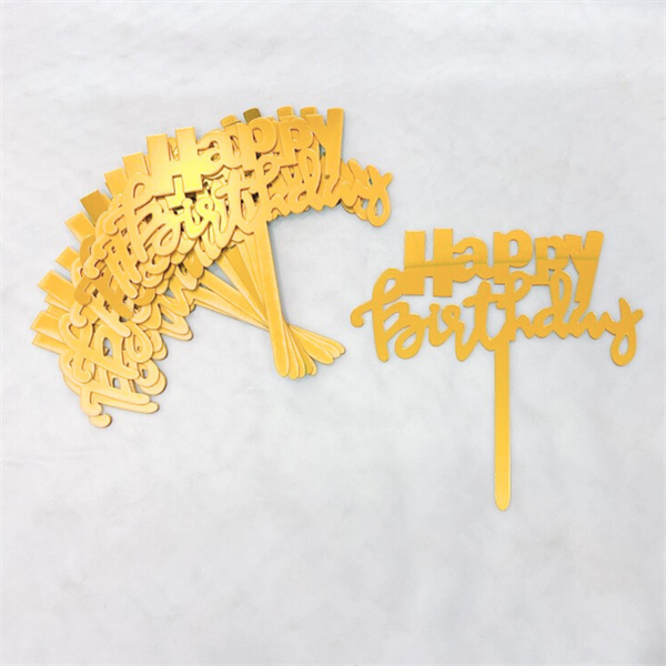 Topper mica Set 10 que HPBD Chữ IN chữ THƯỜNG VÀNG