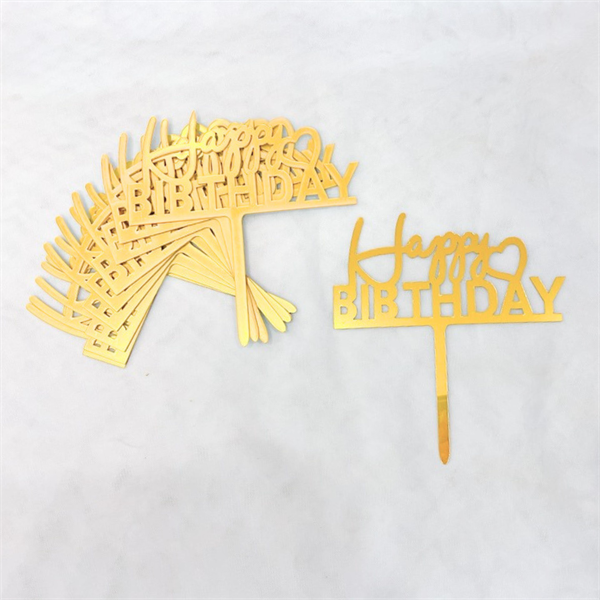 Topper mica Set 10 que HPBD chữ THƯỜNG IN TRÁI TIM VÀNG