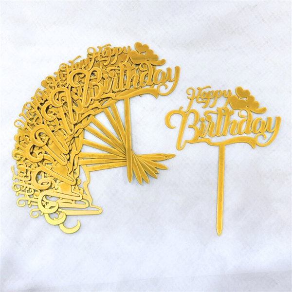 Topper mica Set 10 que HPBD gạch dưới 3 tim vàng