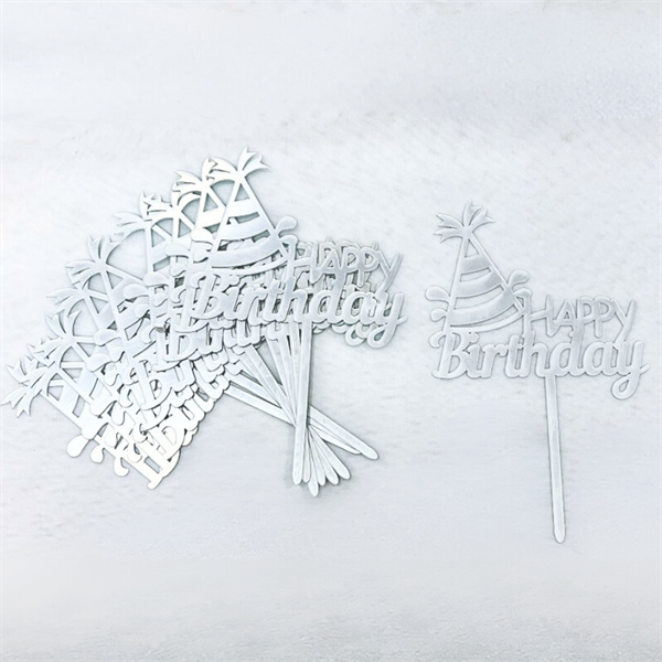 Topper mica Set 10 que HPBD MŨ SINH NHẬT BẠC (set 10c)
