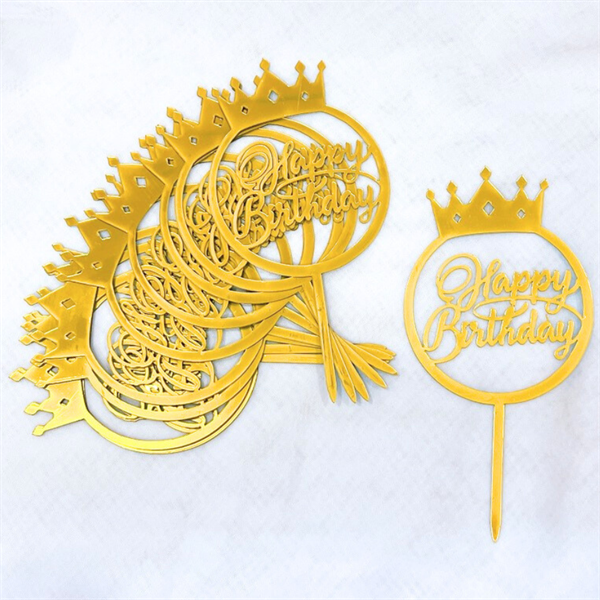 Topper mica Set 10 que HPBD tròn vương miện vàng mẫu mới