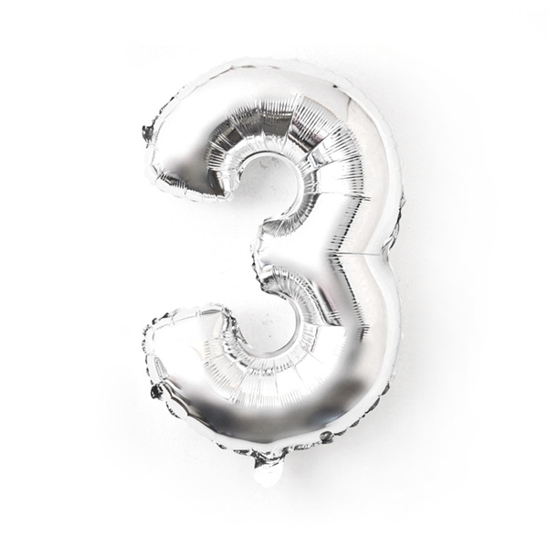 Trang trí Bóng SỐ 3 BẠC 40cm