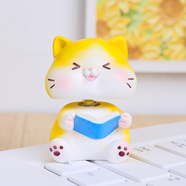 Trang trí MÈO VÀNG đọc sách xanh SỨ ( CỔ LÒ XO)-5cm