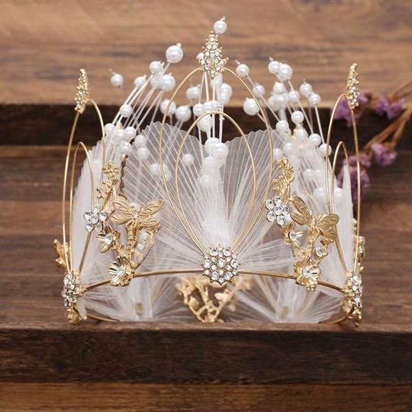 Vương miện hoa sắt ren trắng cao 15cm - ĐK 12.5cm